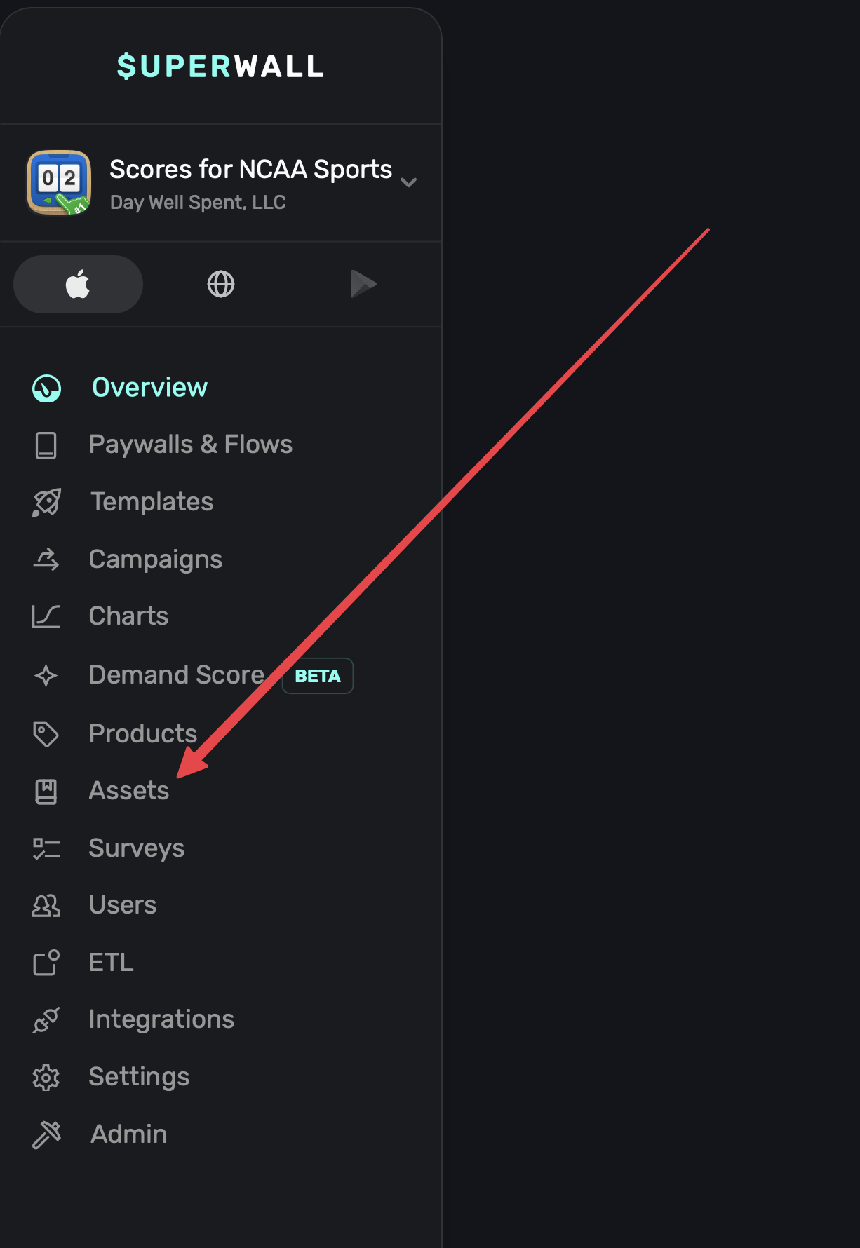 • Open Assets: Click Assets in the sidebar for the currently selected app.